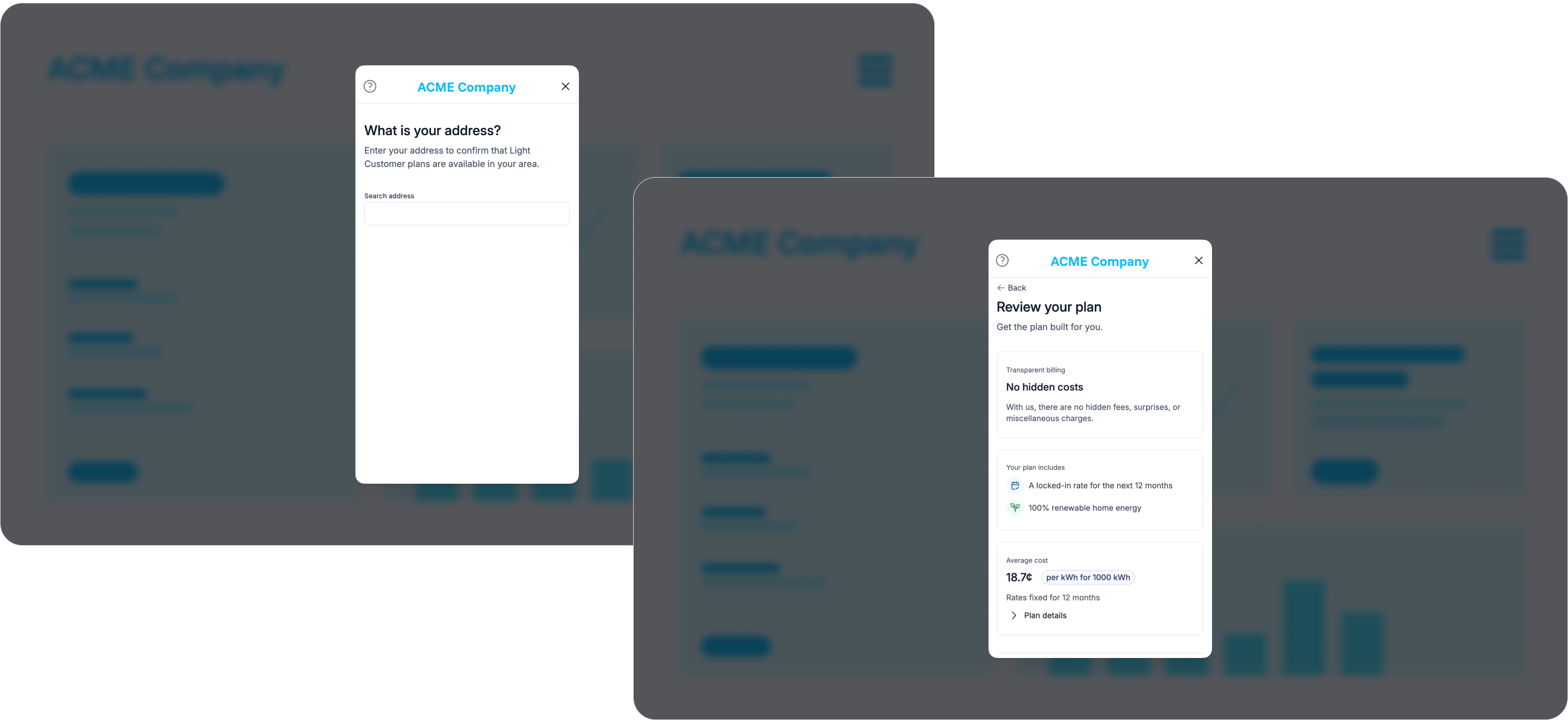 These are prebuilt UI flows hosted by Light to handle discrete interactions with customers. These can be used for out-of-band experiences like renewals to save you time of building for all paths at launch. They are typically launched via a pre-authenticated email link, providing a quick and branded interaction for the customer.